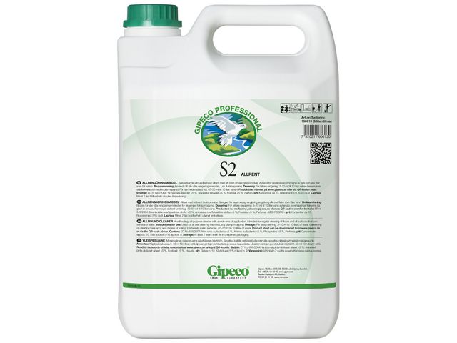 Produktbeskrivning:Bli kvitt smuts på en mängd ytor med detta mångsidiga Gipeco S2-rengöringsmedel. Gör fastigheten skinande ren med detta mångsidiga Gipeco S2-rengöringsmedel. Produkten är mycket effektiv och enkel att använda. Den fungerar bra på golv, bänkskivor och en rad andra vattentäta ytor. Det här persikodoftande Gipeco S2-universalrengöringsmedlet tränger igenom fett, intorkad mat och smuts och ger ett skinande rent resultat. - Lämplig för en mängd rengöringsuppgifter - Användning på golv och andra vattenbeständiga ytor - Doften av persika gör rengöringsmedlet till ett nöje att använda - Effektiv på många olika feta och intorkade ämnen - Mått: 5 l