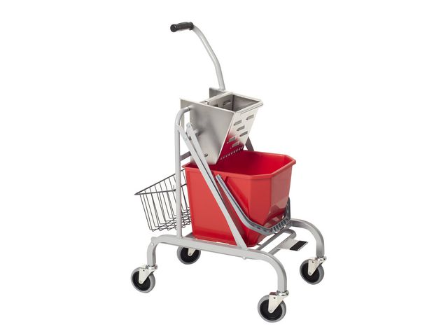 Robust Blue svabbvagn. Komplett med rostfri fotpress och handpress, 1 st korg, 1 st 15 liters hink. Mått: L600xB400xH960 mm.