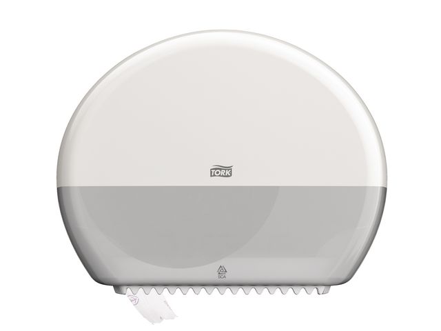 Produktbeskrivning:Dispener med modern design och hög kapacitet för att minimera underhållet. Tork Dispenser Mini Jumbo Toalettpapper i Elevation design passar perfekt för toalettutrymmen med medelhög till hög besöksfrekvens, där det är viktigt att utnyttja tiden effektivt och hålla kostnaderna låga. Den höga kapaciteten minskar tiden för underhåll och garanterar att det alltid finns papper. Tork Elevation dispensrar har en sömlös, funktionell och modern design som skapar ett långvarigt intryck hos dina besökare. - Smart rullhållare för restpapper innebär att papper alltid finns tillgängligt - Optimal rullbroms undviker fritt roterande rullar och minskar därmed förbrukningen - Genomskinligt fönster gör det möjligt att se när det är dags för påfyllning - Jumbo Mini T2 - Färg: Vit
