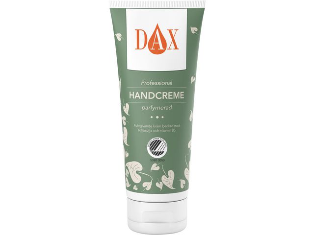 Produktbeskrivning:DAX Professional handcreme är en mjukgörande och lugnande salva för extra torr och känslig hud. Faktorer som väder och vind, arbete med handskar m.m. utsätter huden för påfrestningar och skadar dess naturliga sätt att skydda sig själv. Man behöver därför hjälpa huden med återfuktningen. DAX Professional handcreme är skapad med miljön så väl som människan i fokus och är en lätt handcreme som ger snabb återfuktning under arbetsdagen. Handcremen är baserad på vegetabiliska oljor och innehåller solrosolja, allantoin och vitamin B5 som hjälper till att återuppbygga hudens naturliga barriär. Miljömärkt med Svanen. - pH-värde: på ca 5 - Parfymerad