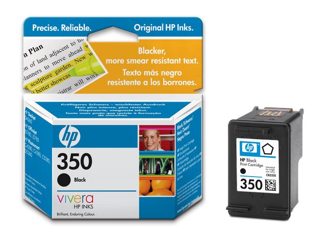 Produktbeskrivning:HP 350 (CB335EE) svart bläckpatron ger skarpa, fylliga och professionella utskriftsresultat. Den här HP-bläckpatronen ger klara utskrifter. Resultaten är vattentåliga, kladdfria och färgbeständiga. Den här patronen är enkel att återvinna och garanteras vara fri från defekter under garantitiden. Det är ett utmärkt val för att uppnå utskrifter av hög kvalitet. För bästa resultat använder du den här bläckpatronen i kombination med olika HP-maskiner. - Färg: svart - Kapacitet: Upp till 200 A4-sidor - Lätta att återvinna - Håller länge - Kladdfri och färgbeständig - Se kompatibilitetstabellen för lämpliga maskiner