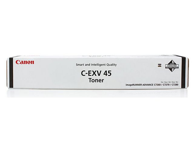 Produktbeskrivning:Välj tonern Canon 45 för att få funktionalitet och effektivitet hemma eller på kontoret. Förbättra skrivarens funktionalitet och prestanda och säkerställ högkvalitativa utskrifter med tonern Canon 45. Den här kassetten innehåller svart toner och har en kapacitet på 80 000 sidor med 5 % täckning. - Färg: Svart - Kapacitet på 80 000 sidor - Sidkapacitetstäckning: 5 % - Kompatibla med: IR ADVC7260i, C7270i, C7280i